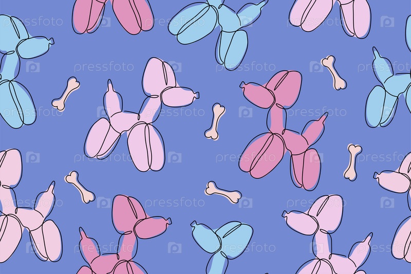 Классическая собачка из шариков. Векторный бесшовный рисунок милого мультяшного пузырькового животного в цвете. Элемент дизайна логотипа, открытки, принта на футболке, приглашения, аксессуаров. Векторная иллюстрация