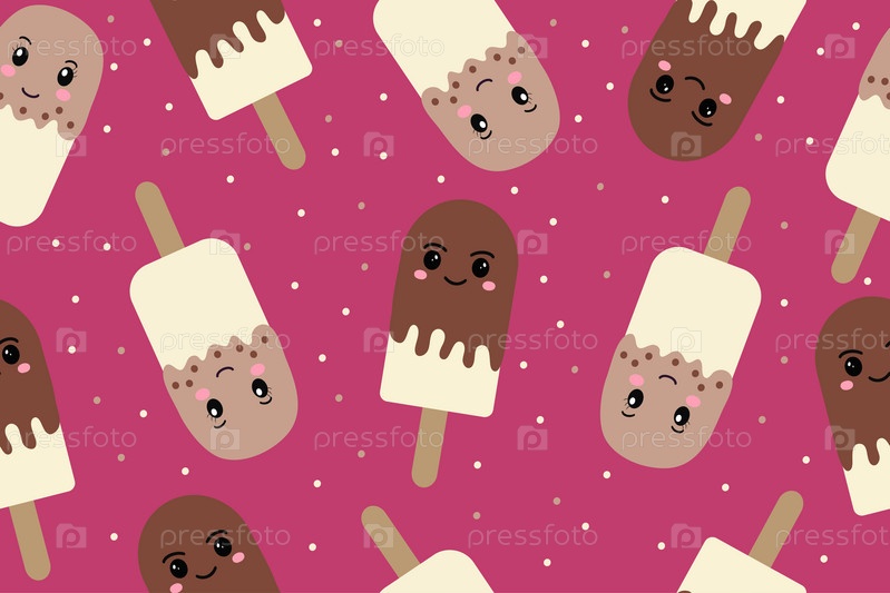 Шоколадное эскимо бесшовный узор на розовом фоне. Векторная иллюстрация