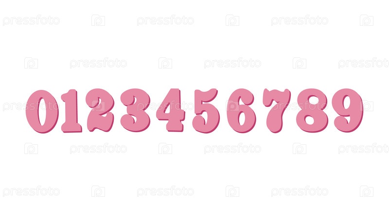 Розовые цифры от 0 до 9. Коллекция цветных цифр. Набор ярких фигурок с нумерацией. Элементы в мультяшном стиле. Векторная иллюстрация