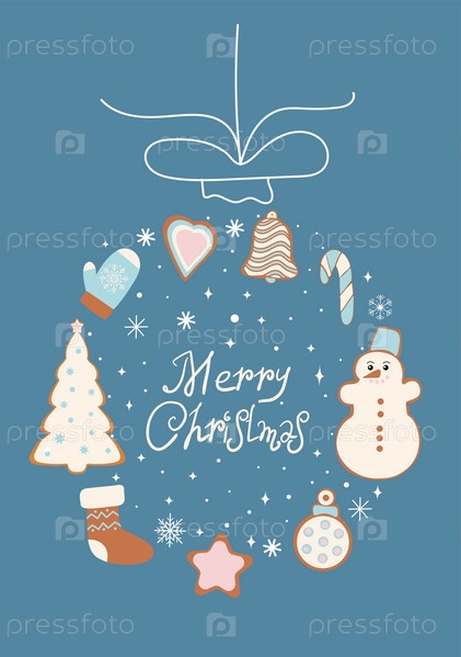 Открытка с пряниками и надписью «С Рождеством». Векторная графика