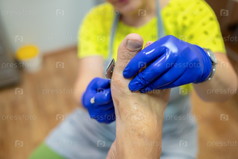 Концепция мужского педикюра, педикюра ног, косметолог делает классический педикюр для пожилого клиента-мужчины