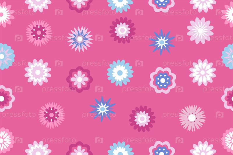 Бесшовный узор из красочных декоративных цветов, изолированных на розовом фоне. Симпатичные яркие цветы, векторная иллюстрация