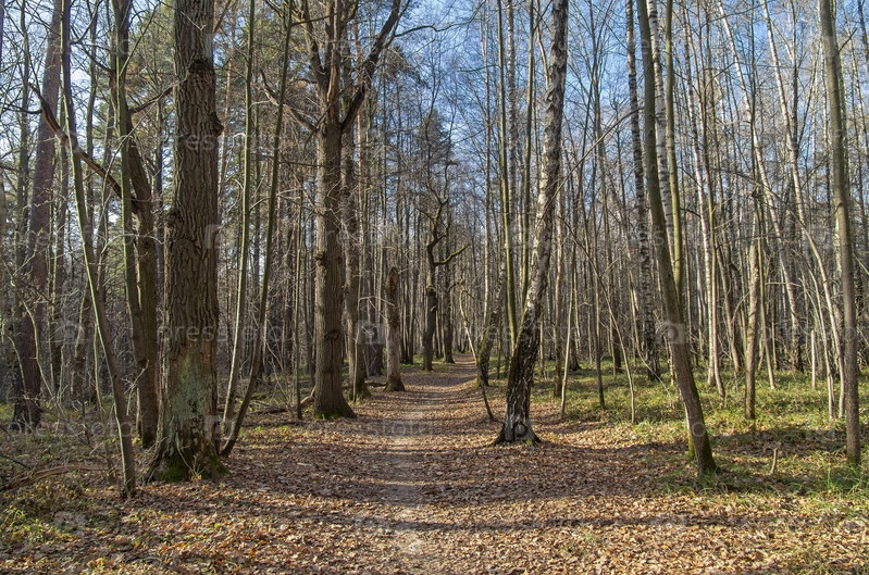 Тропинка в осеннем лесу. Битцевский лесопарк, Москва. Солнечный день в начале ноября
