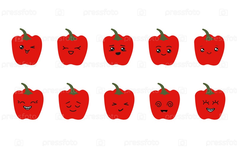 Симпатичная икона красного перца в стиле каваи. Кулинарные изделия и шаблон оформления рецептов.Векторная иллюстрация
