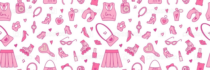 Бесшовные модные розовые узоры в стиле Барбикора. . Векторная иллюстрация