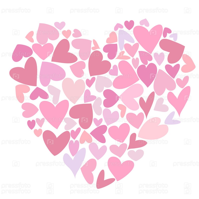 Большое сердце из маленьких сердец. Романтическая и милая открытка, нарисованная вручную. Дизайн ко Дню святого Валентина и приглашение на свадьбу. Векторная иллюстрация