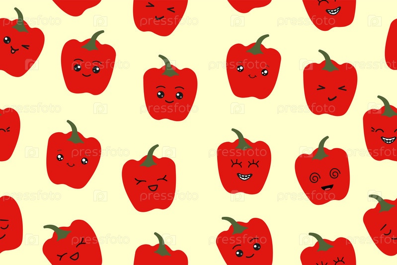 Бесшовный угоз из красного перца в стиле каваи. Кулинарные изделия и рецепты оформляют шаблон.Векторная иллюстрация. Векторная иллюстрация