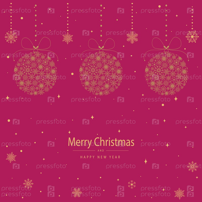 Праздничная рождественская открытка с елочными шарами из снежинок. Открытка с Рождеством и Новым годом