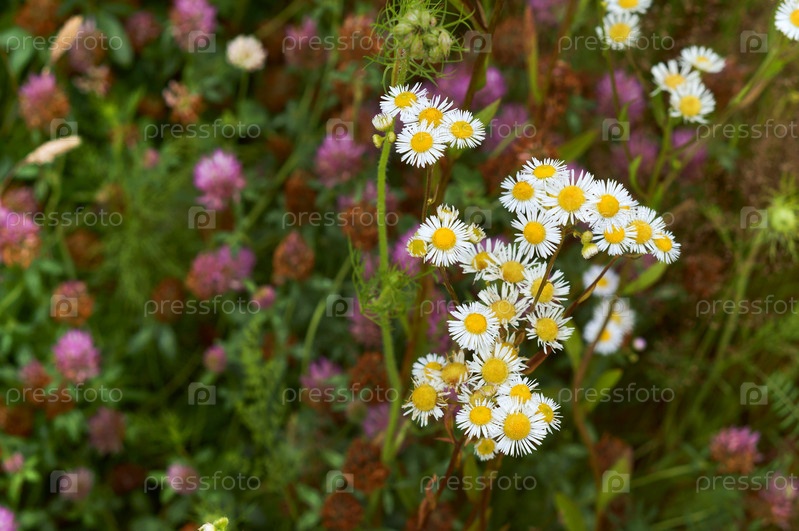 Луговая трава и цветы, полевые цветы, ромашки, лето, трава и цветы в поле