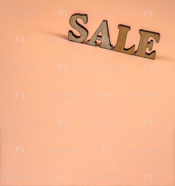 Продажа больших букв, акция. Распродажа со скидкой. Скидка на деревянные буквы на оранжевом фоне