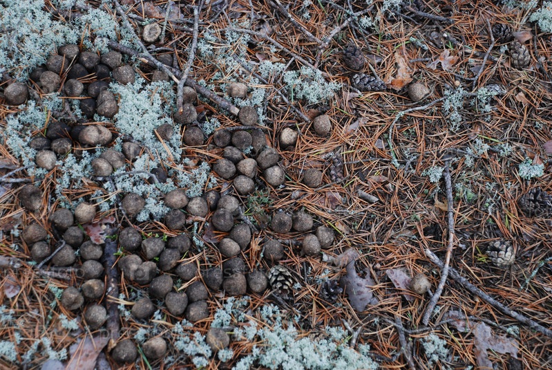 Фекалии оленя в лесу