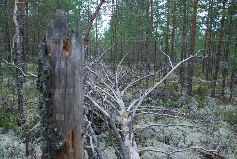 Засохшие ветви упавшего дерева