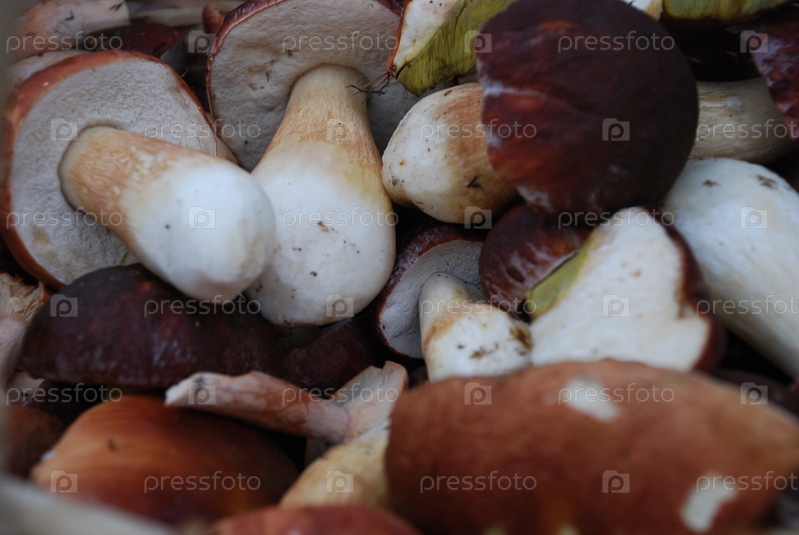 Несколько белых грибов в корзине. С