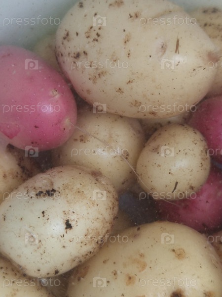 Молодой картофель в белом пластиковом ведре