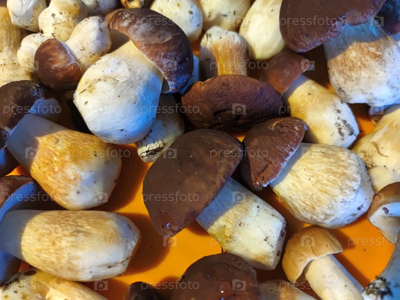 Несколько белых грибов в корзине. С