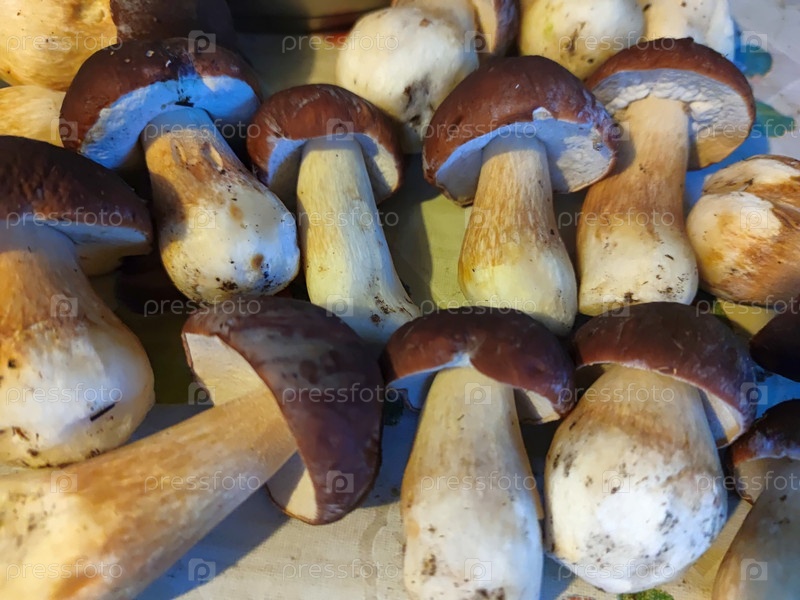 Несколько белых грибов в корзине. С
