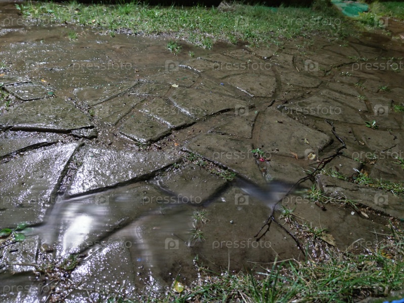 Ночной дождь на сером мокром бетоне
