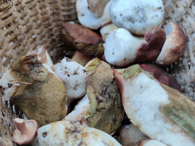 Несколько белых грибов в корзине. С