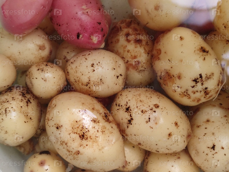 Молодой картофель в белом пластиковом ведре