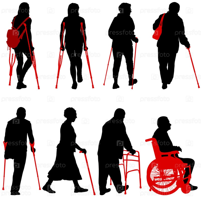 Установите силуэт людей с ограниченными возможностями на белом фоне