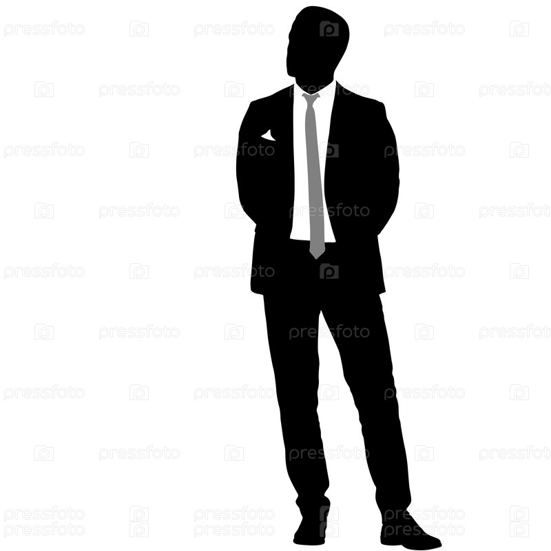 Силуэт бизнесмена в костюме с галстуком на белом фоне