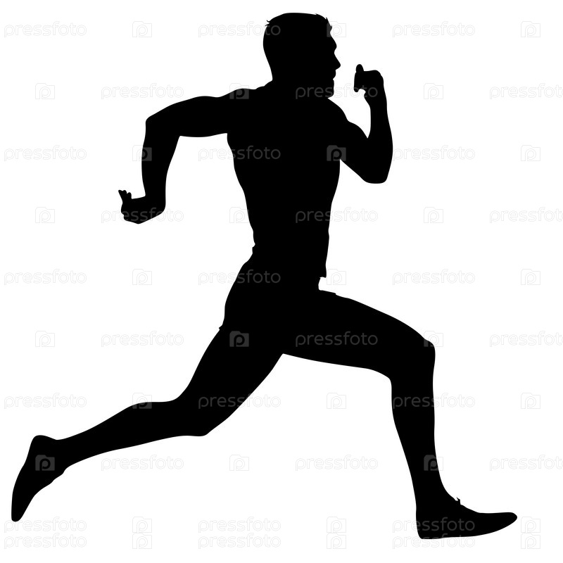 Черные силуэты бегунов на белом фоне