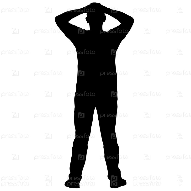 Черные силуэты человека с поднятой рукой на белом фоне