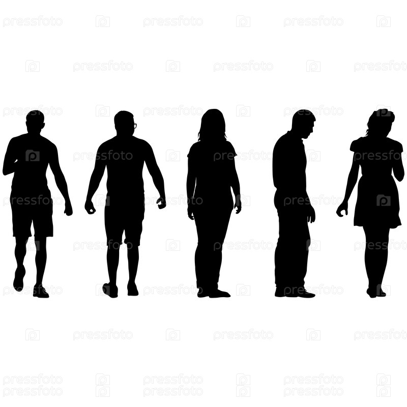 Силуэт группы людей, стоящих на белом фоне