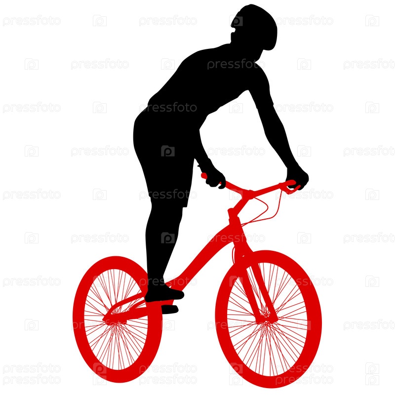 Силуэт спортивного велосипедиста на белом фоне