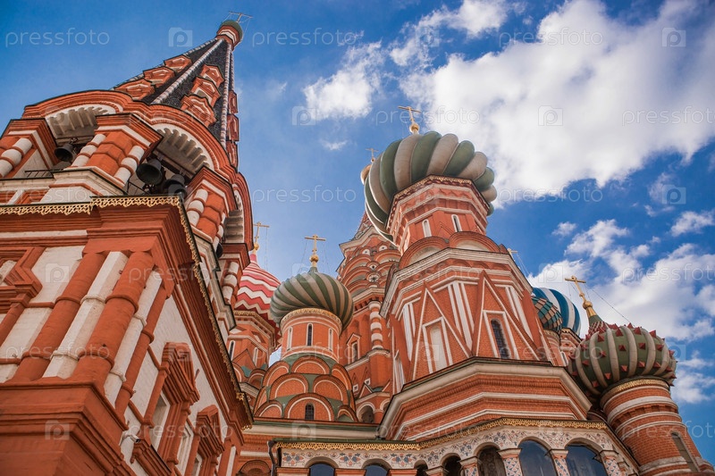 МОСКВА, РОССИЯ - 26 СЕНТЯБРЯ 2023 г.: Собор Василия Блаженного на Васильевском спуске на Красной площади в солнечный осенний день на фоне ярко-голубого неба. Популярная туристическая достопримечательность Москвы