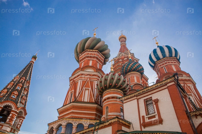 МОСКВА, РОССИЯ - 26 СЕНТЯБРЯ 2023 г.: Собор Василия Блаженного на Васильевском спуске на Красной площади в солнечный осенний день на фоне ярко-голубого неба. Популярная туристическая достопримечательность Москвы