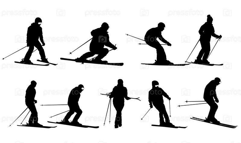 Установить горнолыжник, мчащийся вниз по склону спортивный силуэт