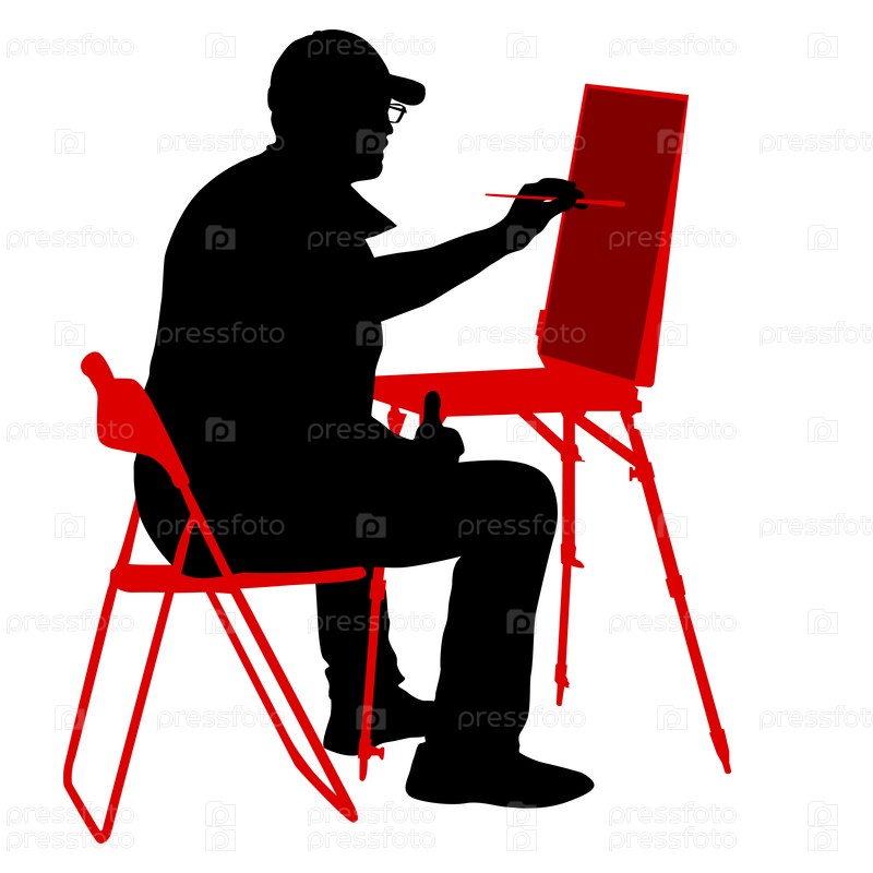 Силуэт, художник за работой на белом фоне