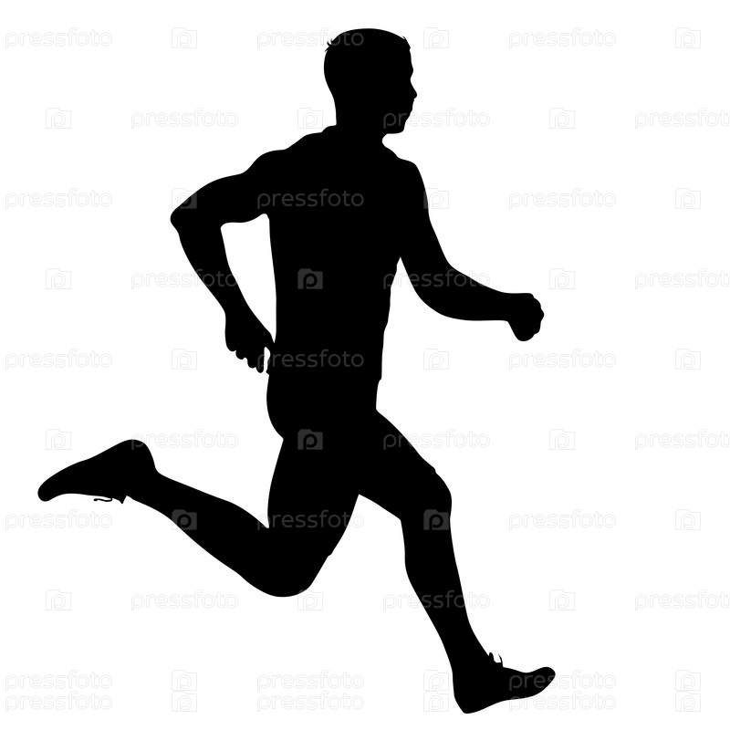 Черные силуэты бегунов на белом фоне