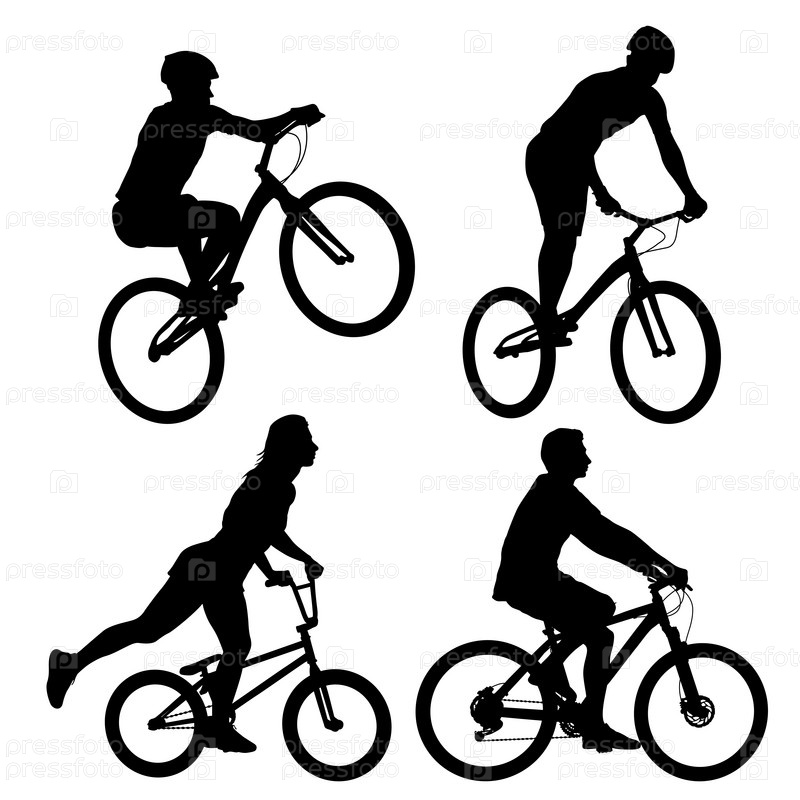 Установите силуэт спортивного велосипедиста на белом фоне