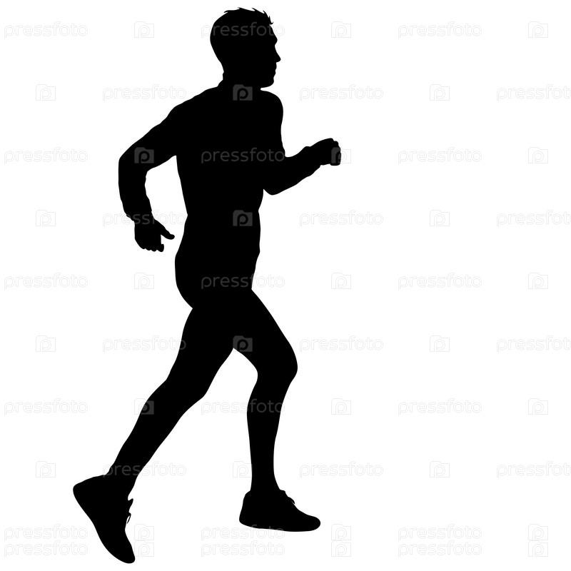 Черные силуэты бегунов на белом фоне