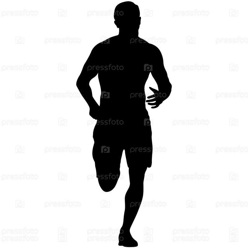 Черные силуэты бегунов на белом фоне