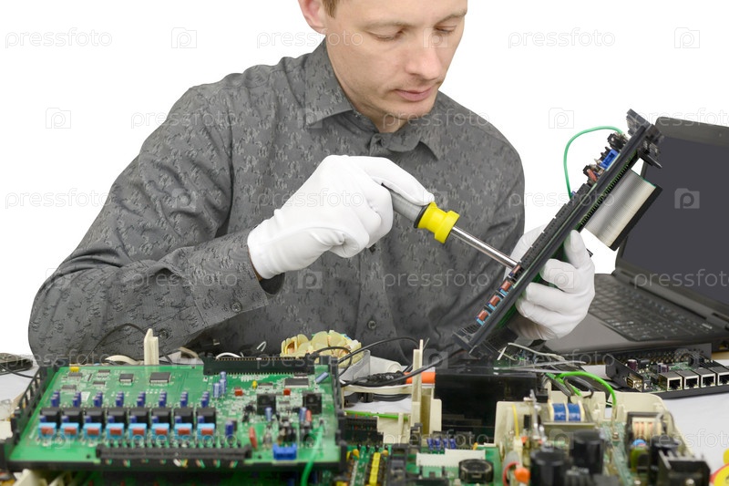 Схемы ремонта компьютеров. Компьютерный техник за работой