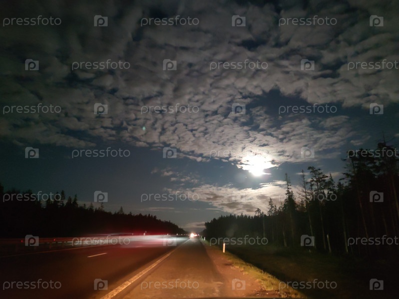 Ночная проселочная дорога под луной