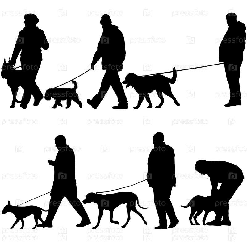 Установите силуэт женщины, мужчины и собаки на белом фоне