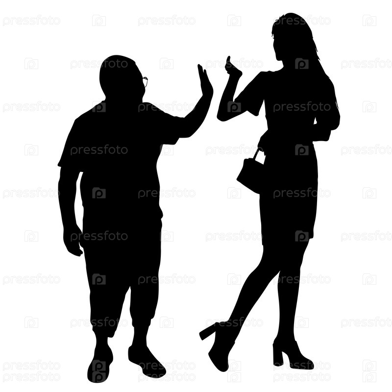 Черные силуэты мужчин и женщин с поднятой рукой на белом фоне