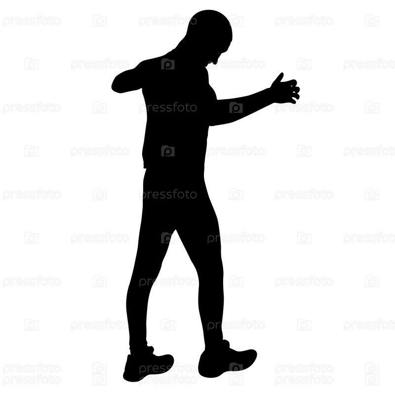 Черные силуэты человека с поднятой рукой на белом фоне