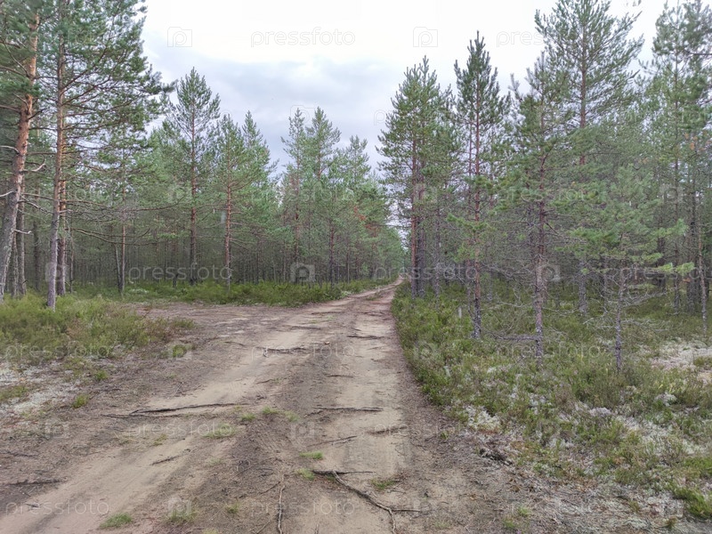 Песчаная дорога в хвойном лесу