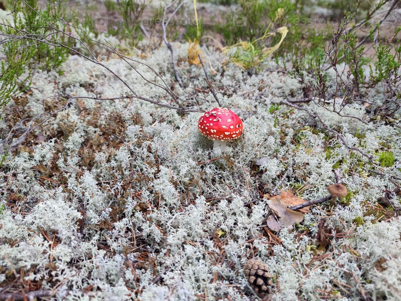 В лесу растет небольшой мухомор