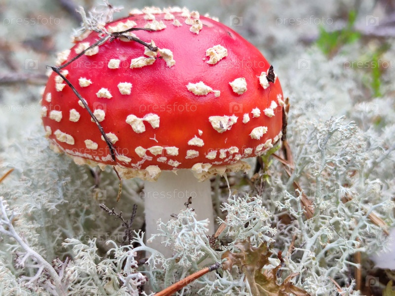В лесу растет небольшой мухомор