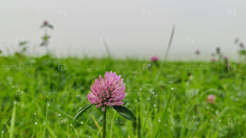 Розовый клевер растет в поле