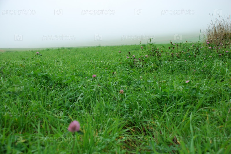 Розовый клевер растет в поле