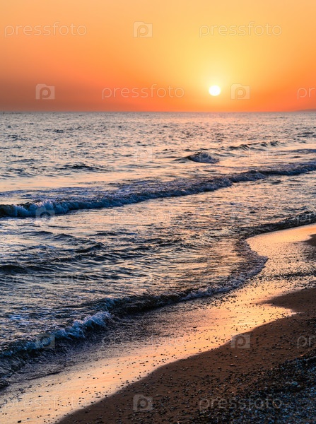Утро на берегу моря. Морской вертикальный пейзаж. Волны на берегу моря. Селективный фокус
