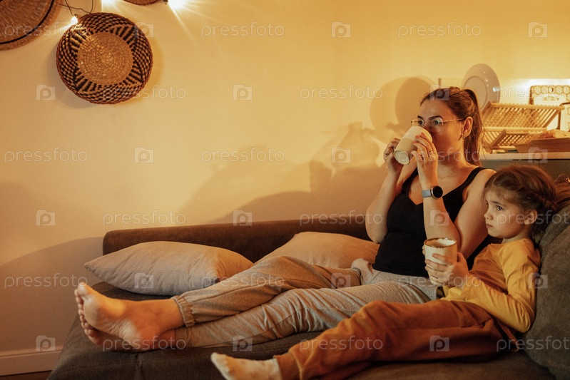 Привлекательная мать и маленькая милая дочь пьют чай дома
