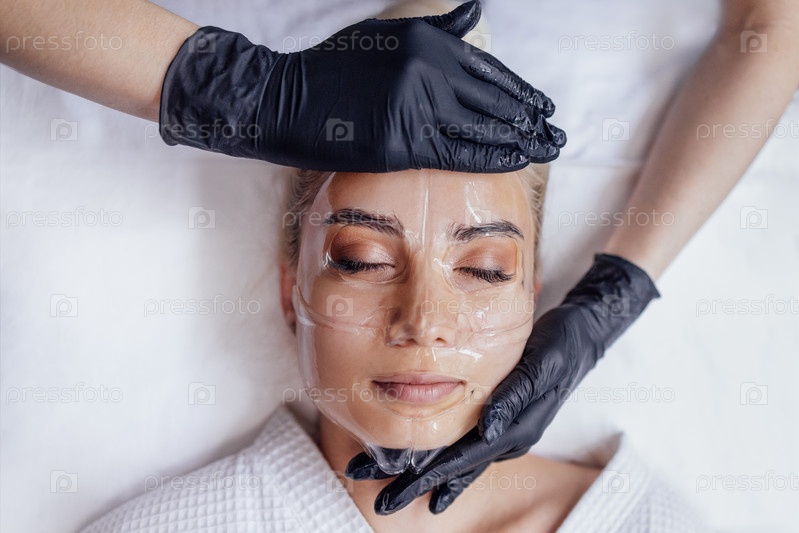 Блондинка красивая девушка в белом халате проходит процедуру увлажнения кожи